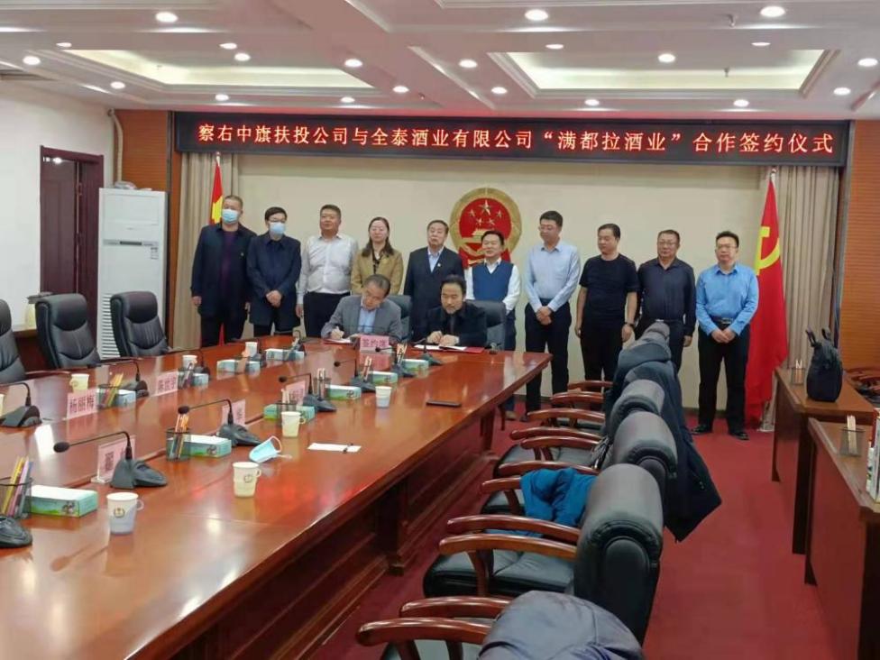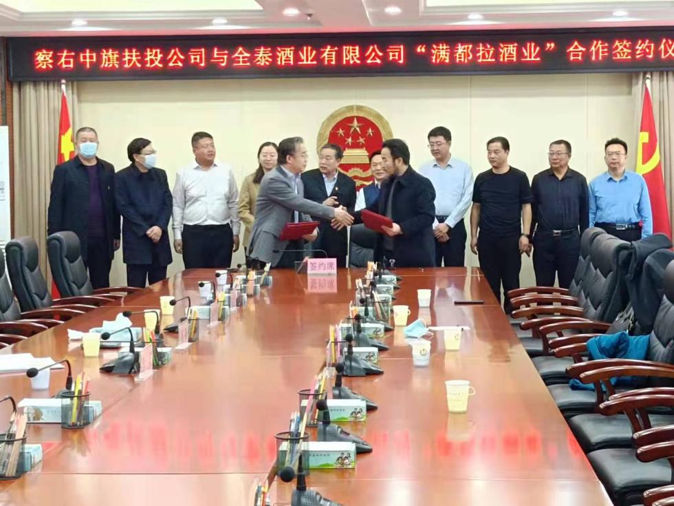 参加本次签约的主要领导和嘉宾:察右中旗高森书记,杨丽梅旗长。察右中旗扶投公司李海青董事长,曹艳杰总经理。贵州省仁怀市全泰酒业有限公司翟峻逸总经理。以及察右中旗镇府相关职能部门的主要领导。